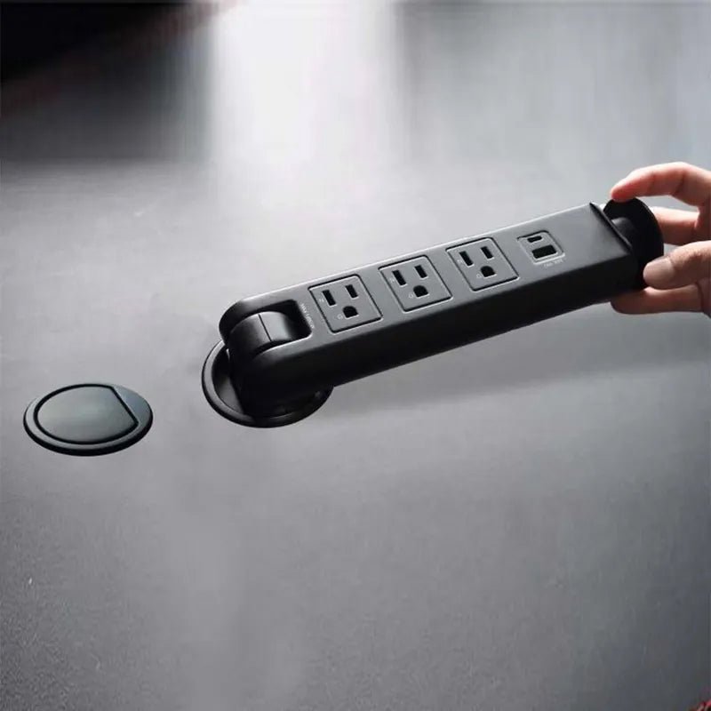 延長線收至桌下 按壓取出 簡潔桌面空間